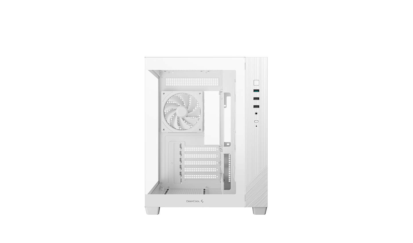 The CG330 3F WH comes pre-installed with two reverse-blade FL series fans on the side and one standard at the rear, forming a horizontal airflow channel that cools effectively. DeepCool’s unique lighting design delivers a uniform glow to your build.