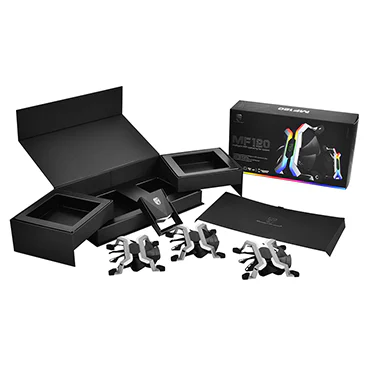 MF120S is a PC case fan capable of powerful heat dissipation. Its unique frameless design together with its double-layered positive pressure fans can deliver maximum airflow with zero hindrance. Meanwhile, the 16.7M true color Addressable RGB light system of MF120S can present in 36 interchangeable lighting modes, and is controllable through both the included controller and specified motherboard. At last, a 5-port RGB hub is included to make your RGB syncing easier than ever!