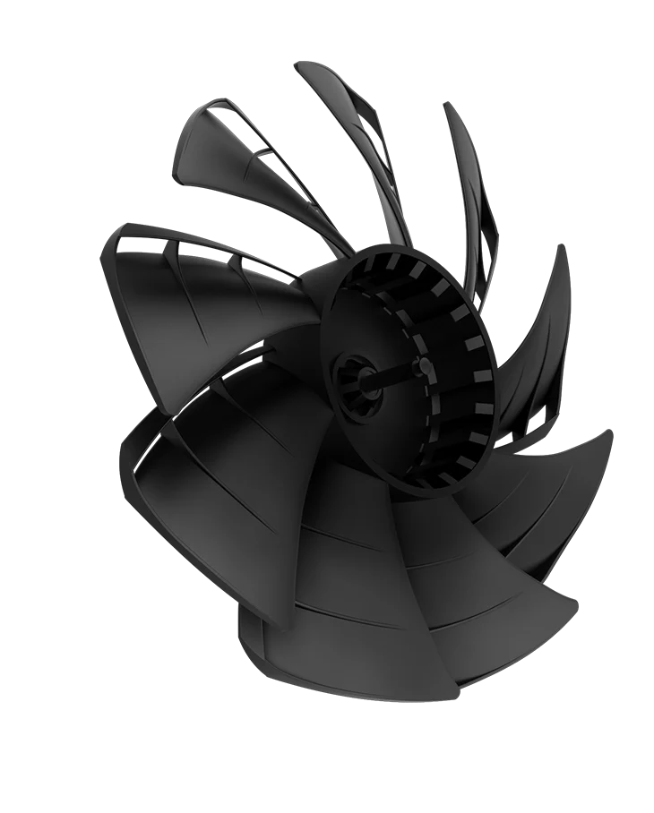 Two layer blower blades designed for maximum efficiency and the suspended fan mounting offers a better unrestricted airflow